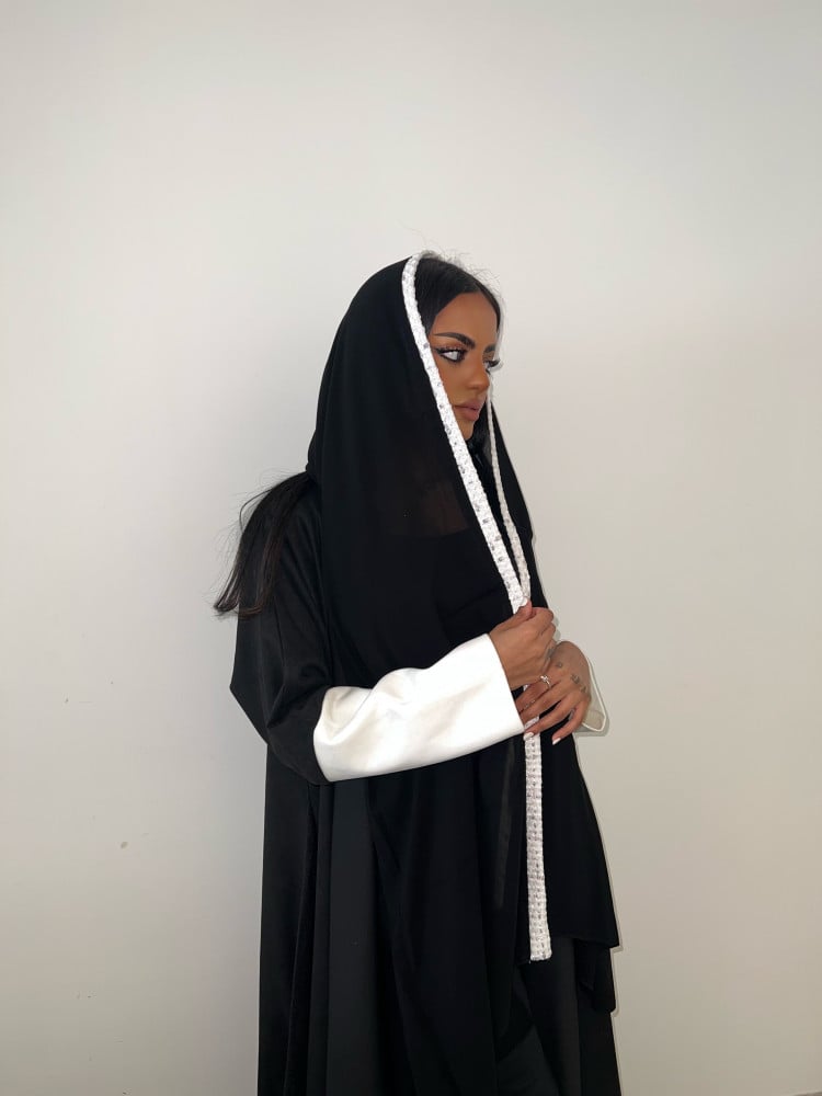 اطلبيها الآن واحصلي معها على حجاب أنيق بطرف أبيض من متجر عبايات فخمة "طله"!