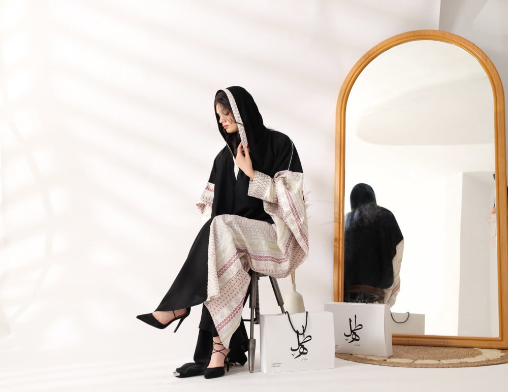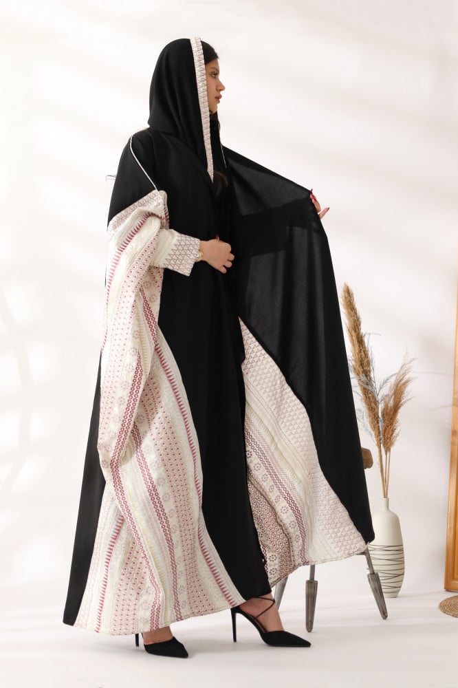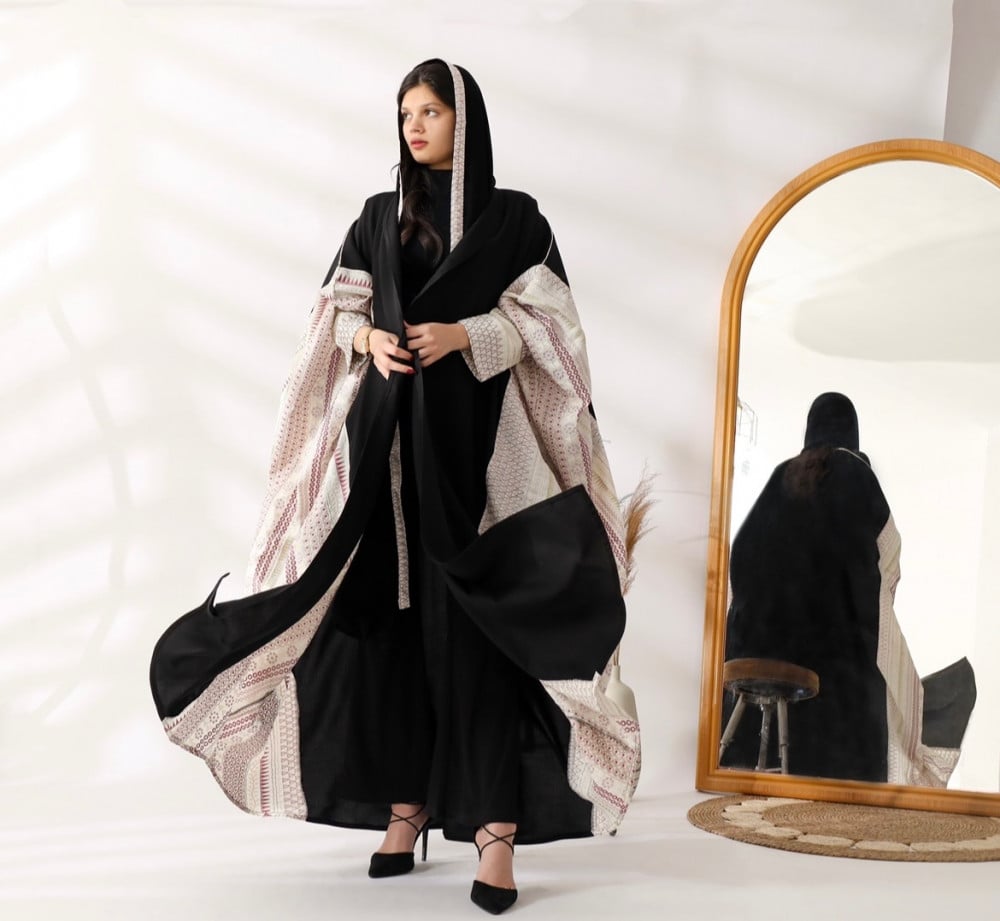 عباءة بالون الاسود من قماش الكريب الملكي الفاخر بقصة نصف بشت ...أرتديها لتزهى بك.