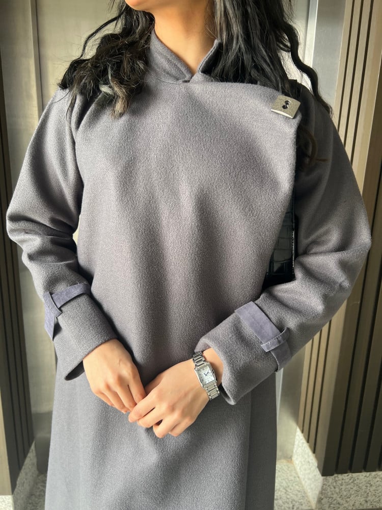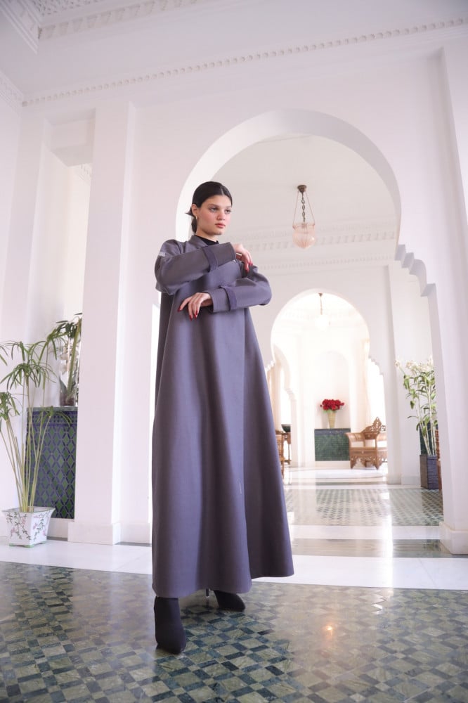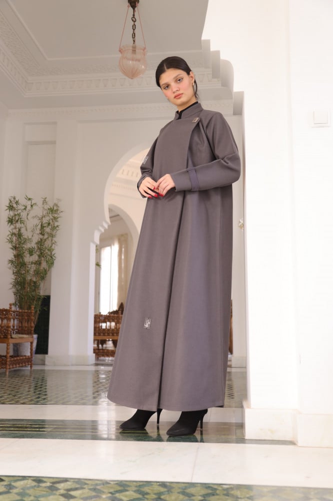 عباية شتوية جوخ بتصميم مستوحى من الطراز الصيني، بلمسة عربية أصيلة من توقيع "طله"، لتضفي تفردًا وتميزًا على العباية، العباية منسوجة من قماش الجوخ السميك، لتمنحك الدفء في الشتاء.