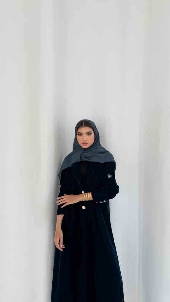 عباية قصة كلوش، أنيقة ومميزة، مصنوعة من قماش المخمل الكوري فاخر الخامة تكون عبايه شتوية بامتياز، تفاصيل الازرار على الأكمام تضيف للعباية لمسة من التفرد والعصرية، كما أنها تتميز بعدم حاجتها للكوي في كل مرة، فهي مناسبة كبديل عند السفر أو التنقلات الطويلة، لا تتجعد عند الطي،