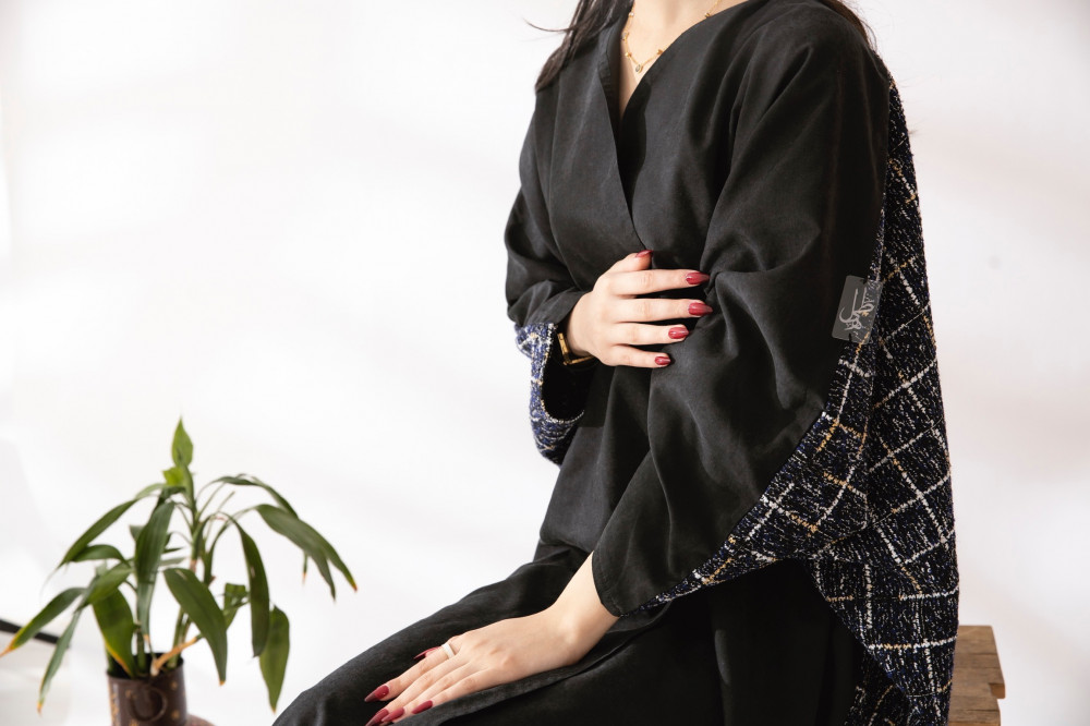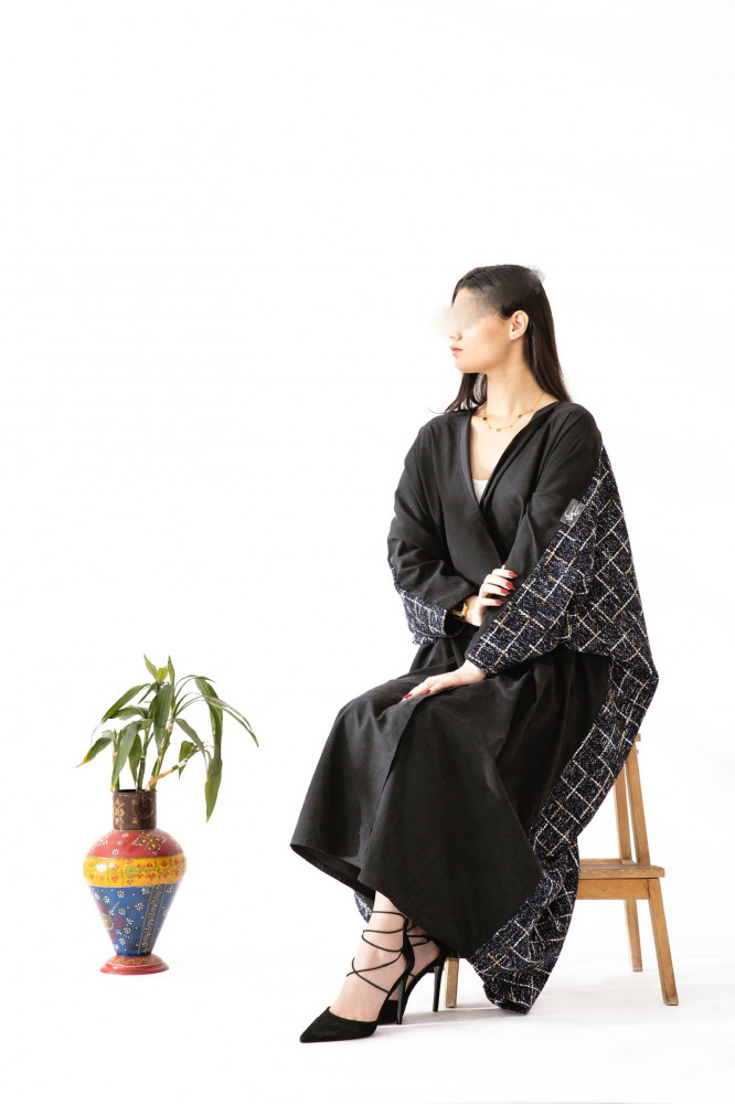 من قماش الشنايل الشتوي بالون الكحلي وقماش الشمواه بالون الاسود بقصة بشت واسعه ملاحظه السعر يشمل طرحه بالون الاسود